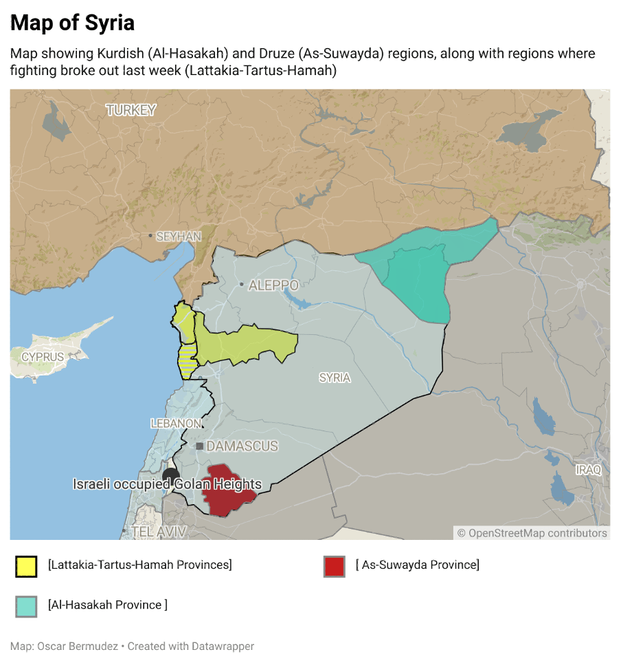 Last week saw the bloodiest outbreak of violence in Syria since the ending of the civil war last December. According to the Syrian Observatory for Human Rights, based in the UK, at least 973 civilians were killed in more than 20 locations across the provinces of Latakia, Tartus, and Hama. The observatory noted that most of the civilians killed were from the Alawite religious minority in the country.